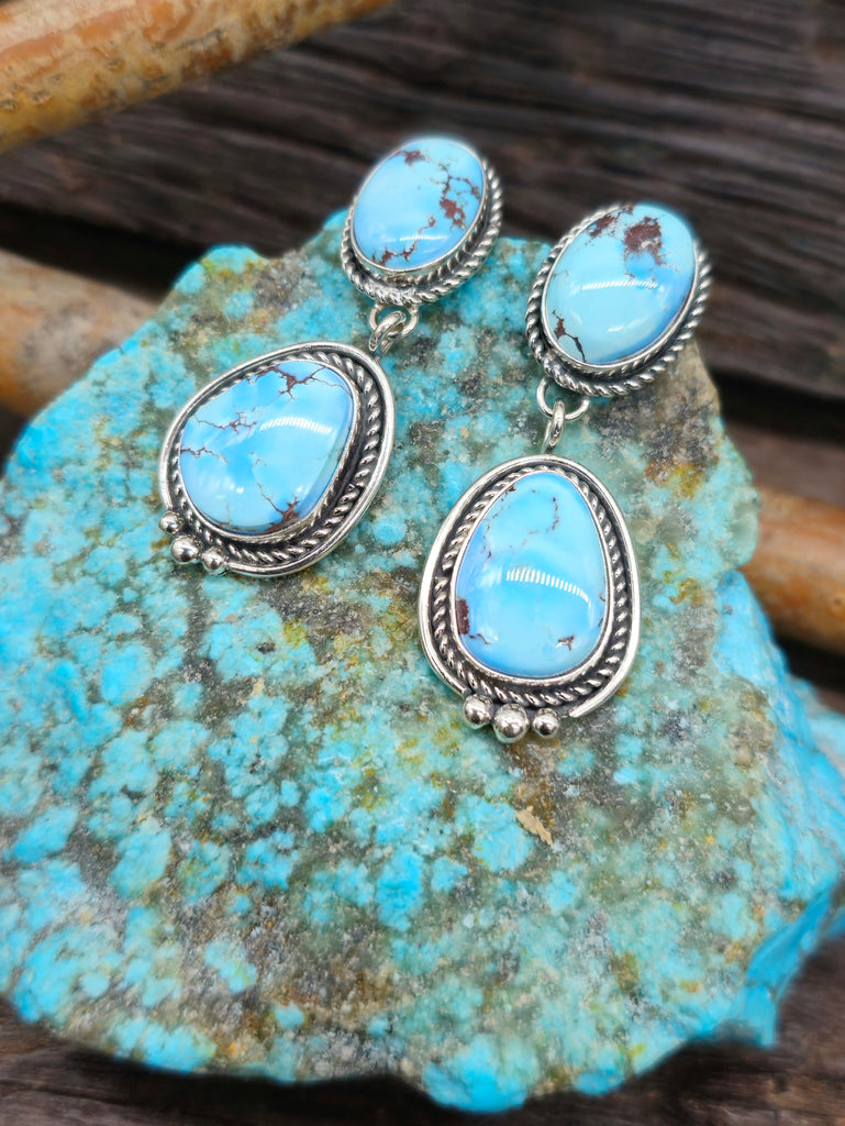 Teardrop Two-Stone Golden Hill Earrings.  Stamped "D" by a Navajo silversmith. All jewelry is handcrafted by Indigenous Artists.  Individual stones...