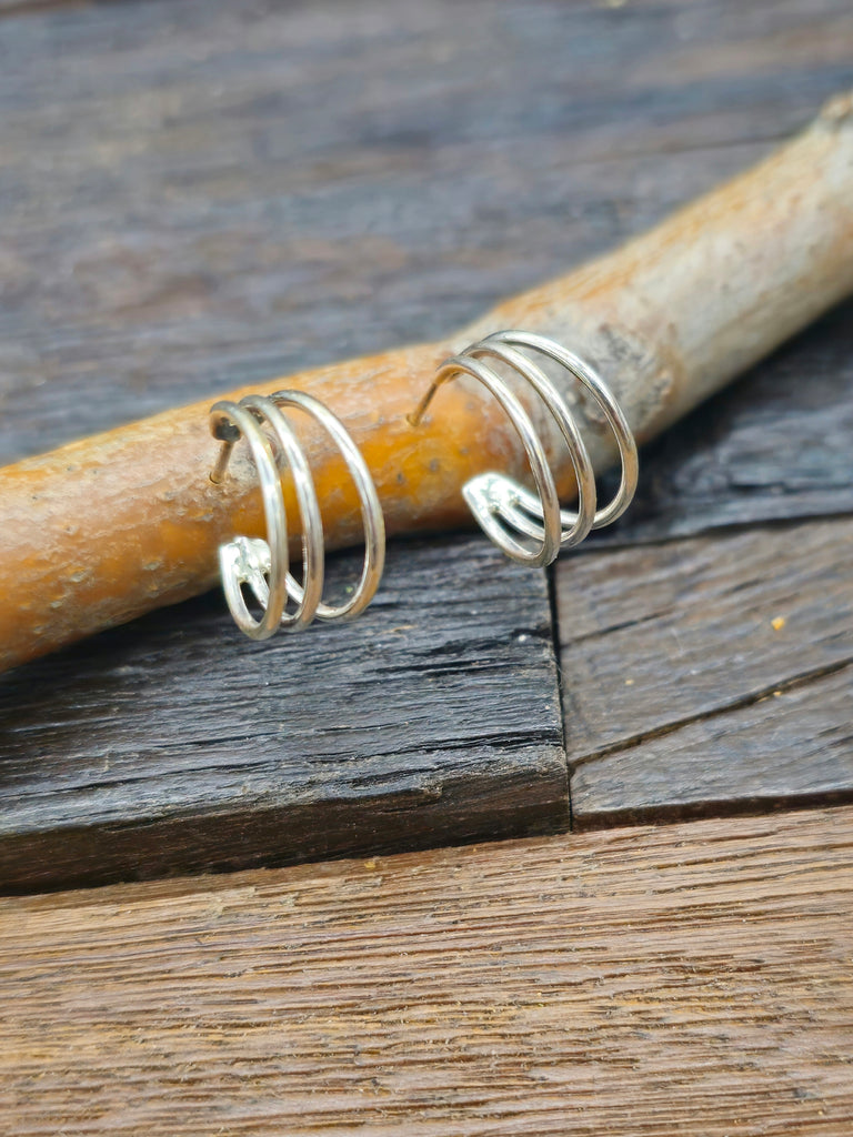 Three Wire Sterling Silver Hoop Earrings All jewelry is handcrafted by Indigenous Artists.  Dimensions: Diameter - 1/2 in.