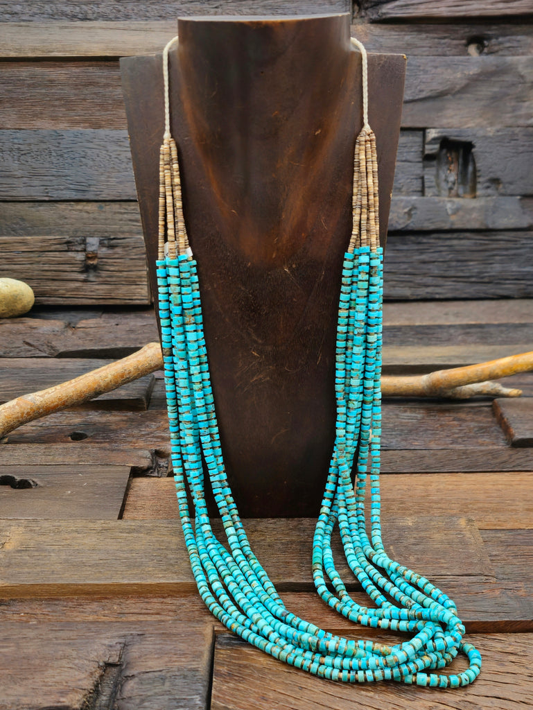 Four - Strand Turquoise and Heishi Necklace by Irene Lovato - 32 in.