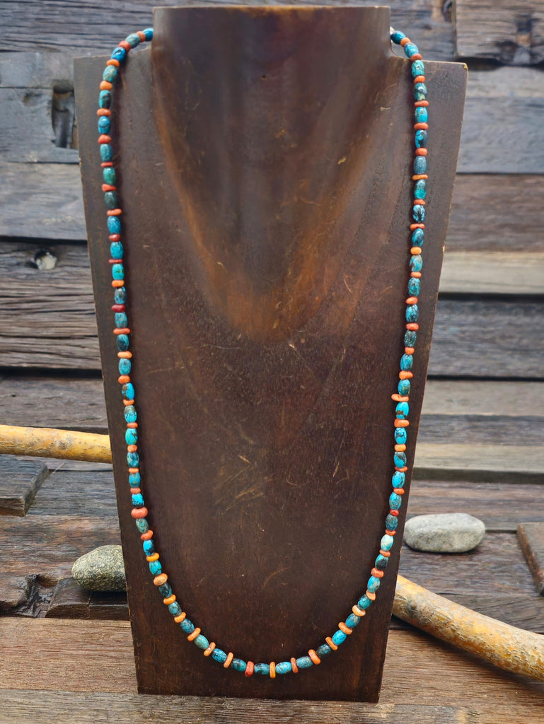 Turquoise and Orange Spiny Bead Necklace All jewelry is handcrafted by Indigenous Artists.  Dimensions: Length - 23 in.
