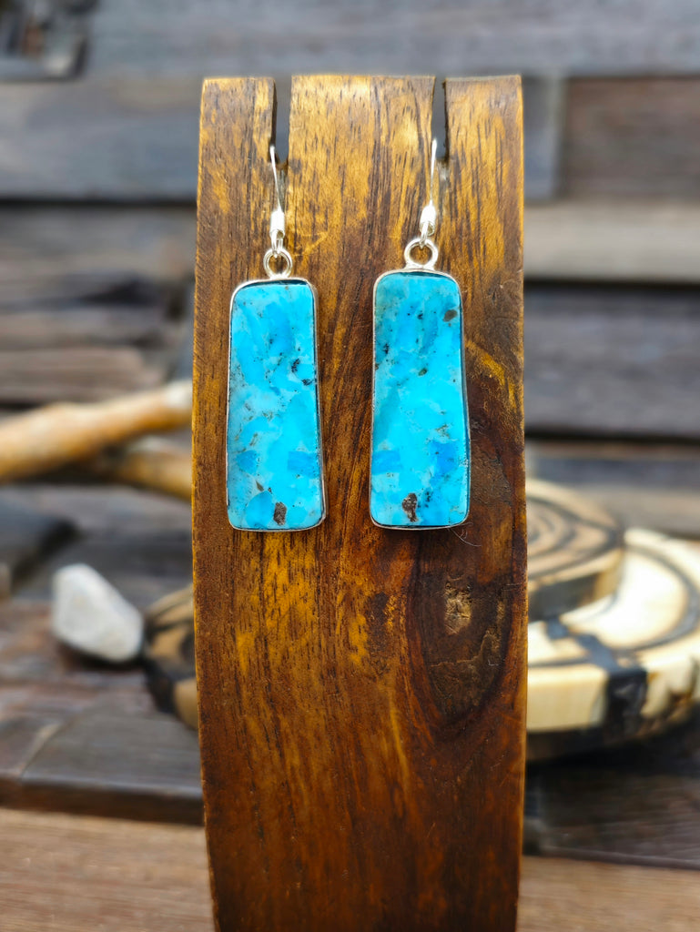 Turquoise and Sterling Silver Slab Earrings by Veronica Tortalita