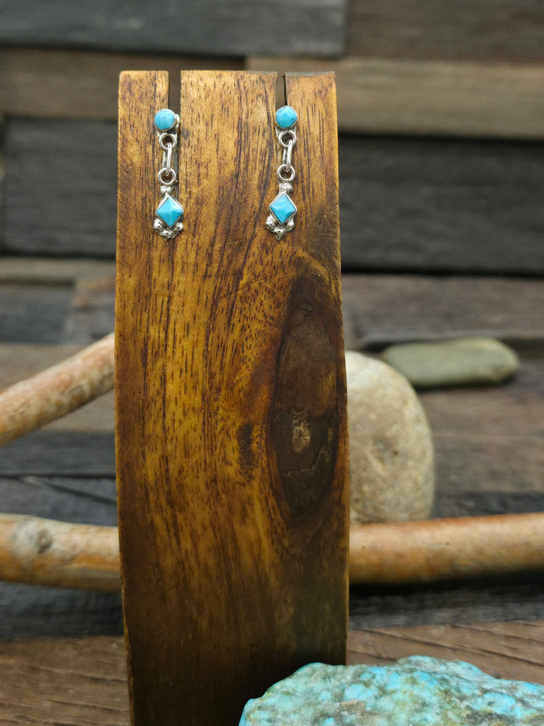 Turquoise and Sterling Silver Two Stone Earrings