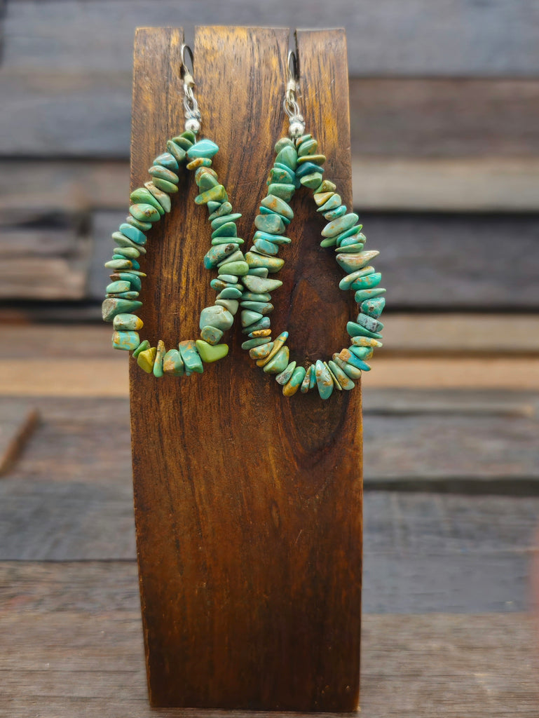 Green turquoise chip loop dangle earrings made by Taos artist Fred Archuleta..   Dimensions: Length - 2 3/4 in.  Width - 1 in.