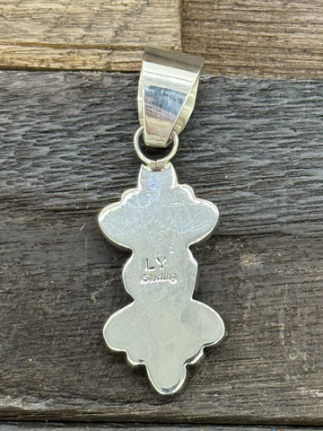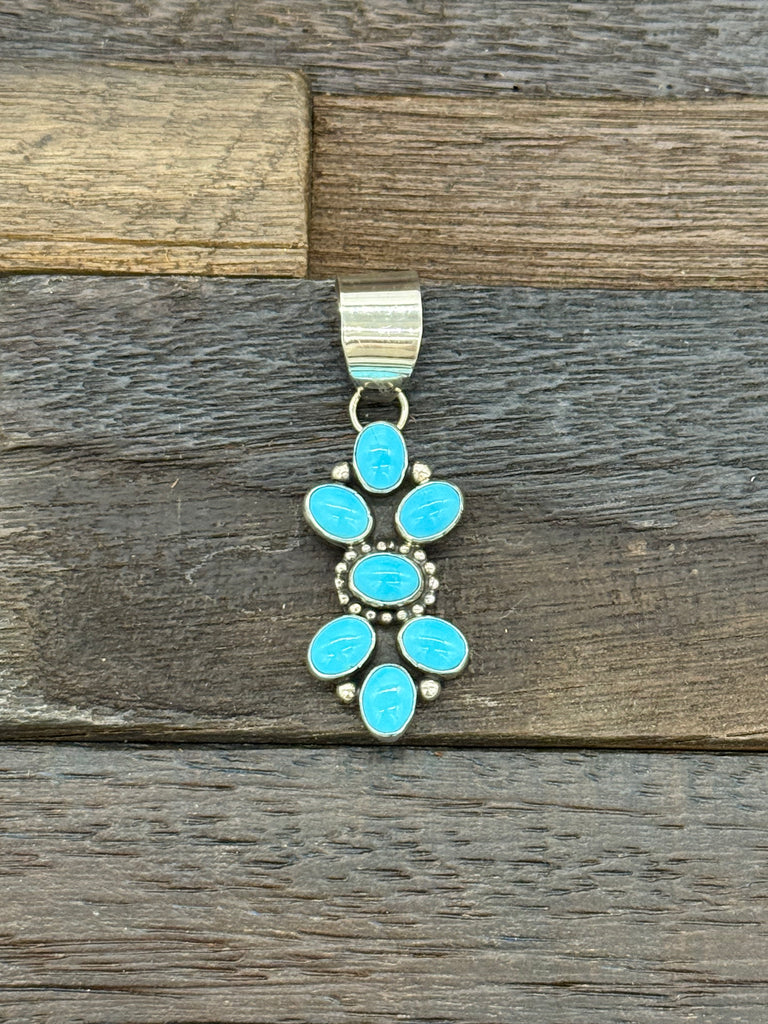 This half cluster pendant features seven blue turquoise cabochons and is set in sterling silver by Navajo silversmith Linda Yazzie. All jewelry is ...