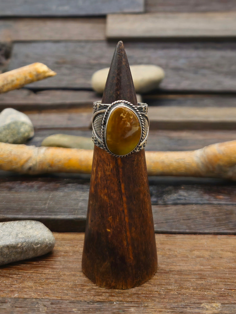 Turquoise Ring by Navajo silversmith Sunshine Reeves All jewelry is handcrafted by Indigenous Artists.  Dimensions: Size - 9 1/2