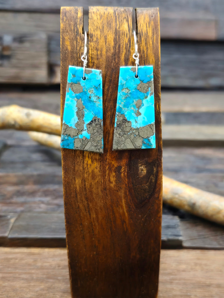 Turquoise Slab Earrings by Marcella Castillo. All jewelry is handcrafted by Indigenous Artists. Individual stones may vary.  Please take caution no...