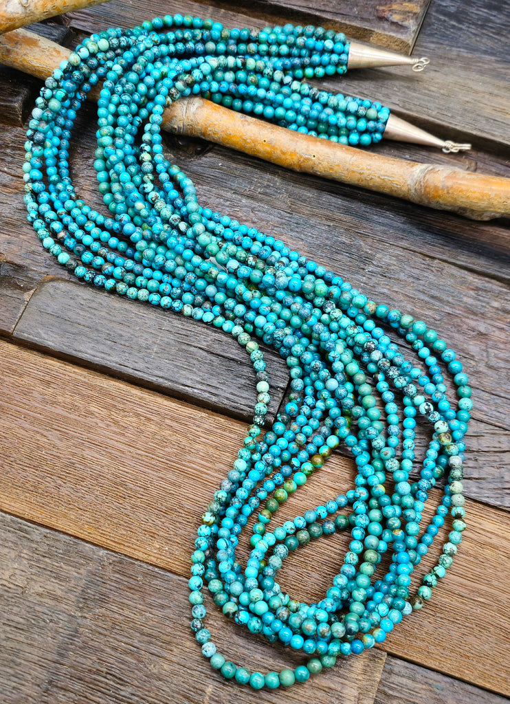 Eight Strand Blue Skyhorse Turquoise Necklace. All jewelry is handcrafted by Indigenous Artists.  Individual stones will vary.  Dimensions: Leng...