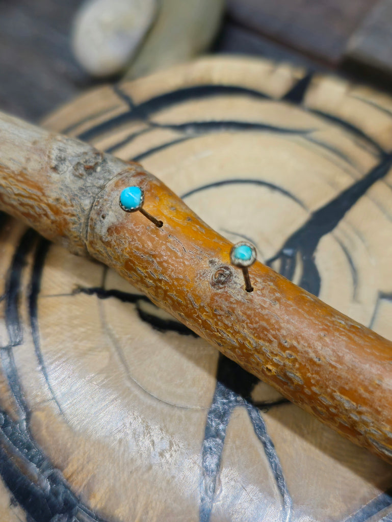 Vintage/Estate Sterling Silver and Turquoise Micro Mini Post Earrings Individual stones will vary. All jewelry is handcrafted by Indigenous Artists...