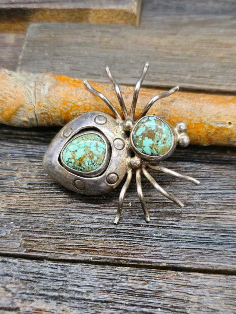 Vintage/Estate Sterling Silver Green Turquoise Spider Pin. All jewelry is handcrafted by Indigenous Artists. Vintage pieces are sold in "as-is" con...