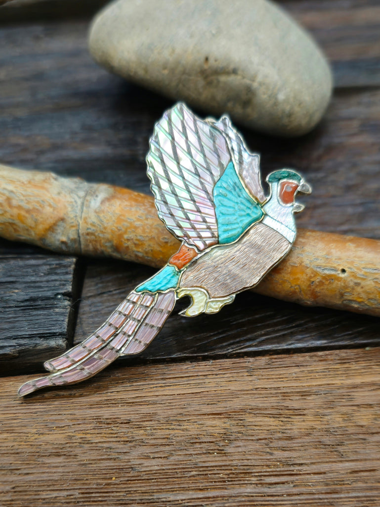 Vintage/Estate Sterling Silver Inlay Pheasant Pin/Pendant. All jewelry is handcrafted by Indigenous Artists. Vintage pieces are sold in "as-is" con...