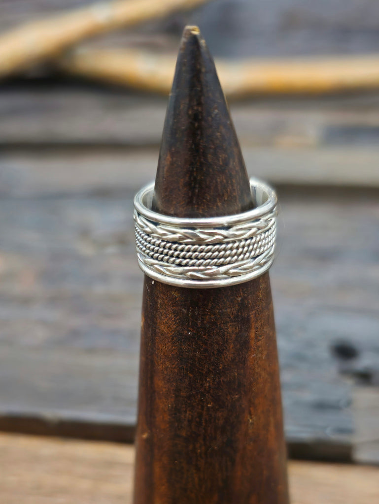 Wide Sterling Silver Ring by Naomi Chee. All jewelry is handcrafted by Indigenous Artists.  Dimensions: Size - 6