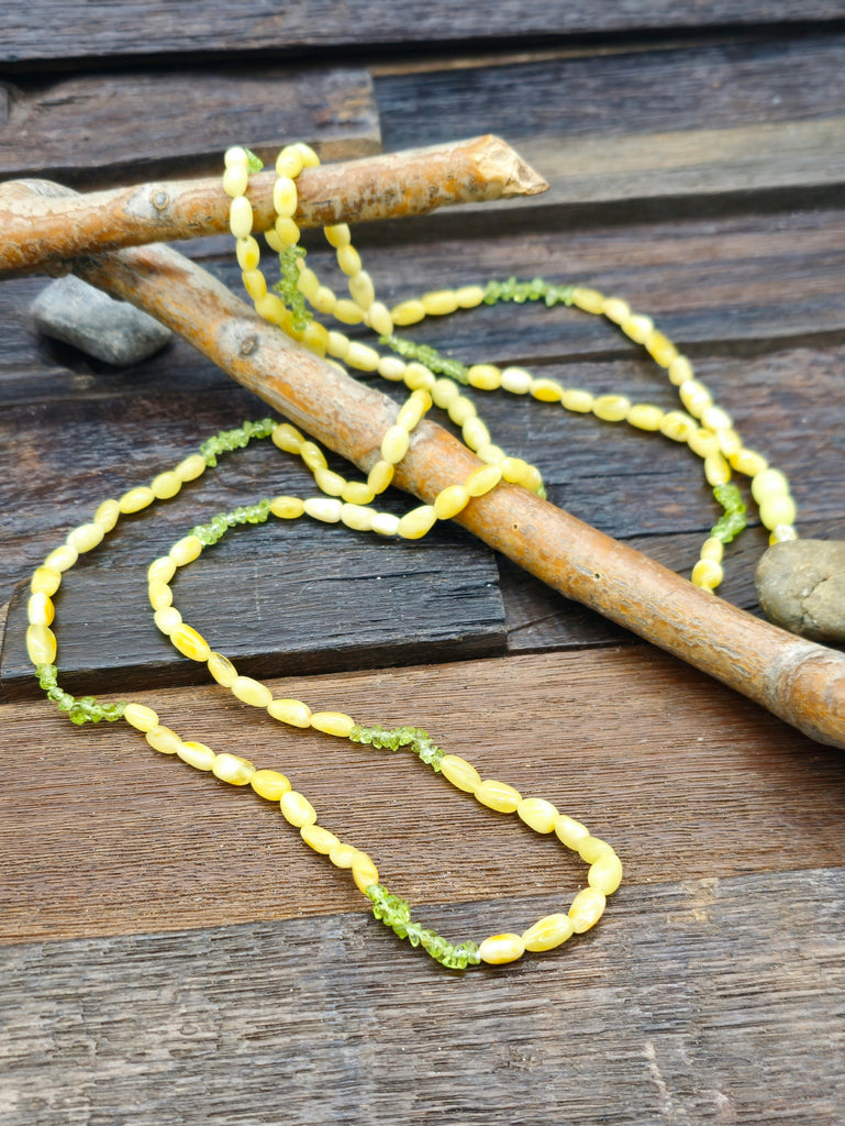 Yellow Amber and Peridot Necklace - 46 in. NON-NATIVE MADE